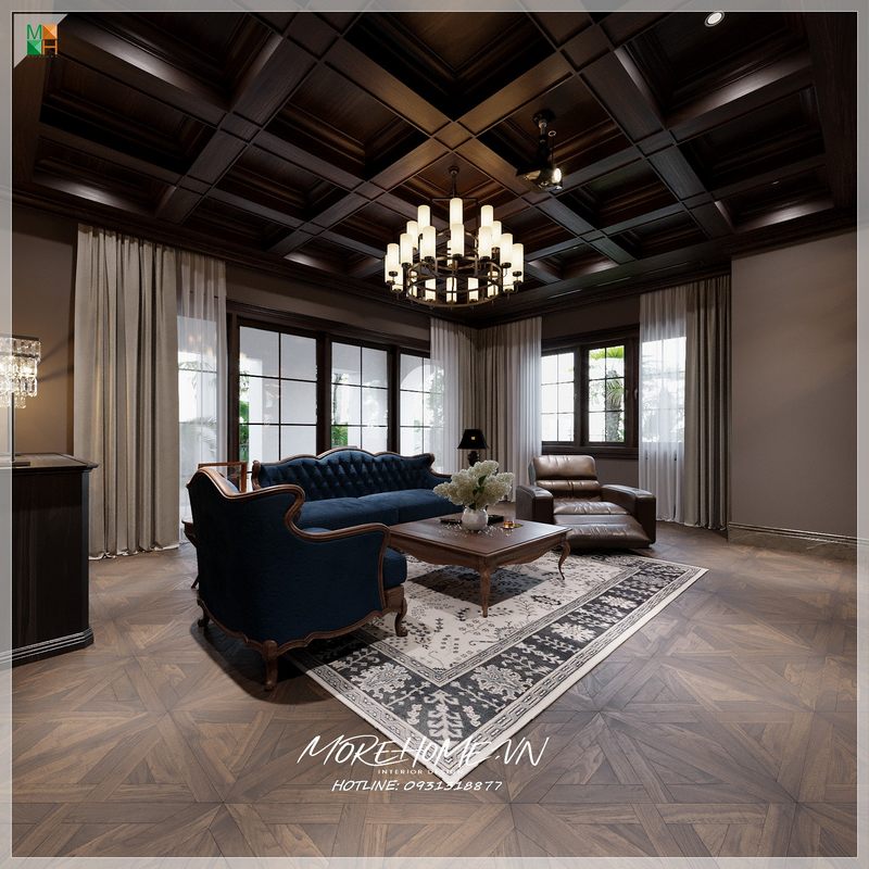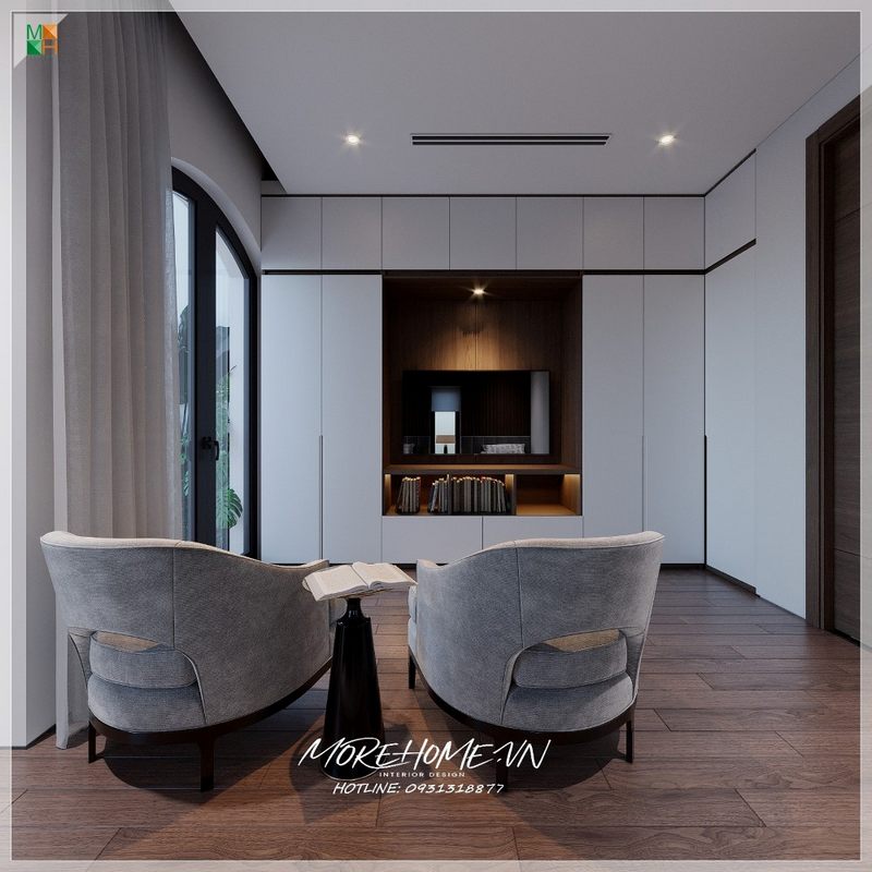 Khi đến gần với phòng khách chung của biệt thự, nhà phố, chúng ta có thể thấy rõ nhất nội thất gần đó. Không gian được trang trí hiện đại với một chút pha trộn của phong cách âu.
