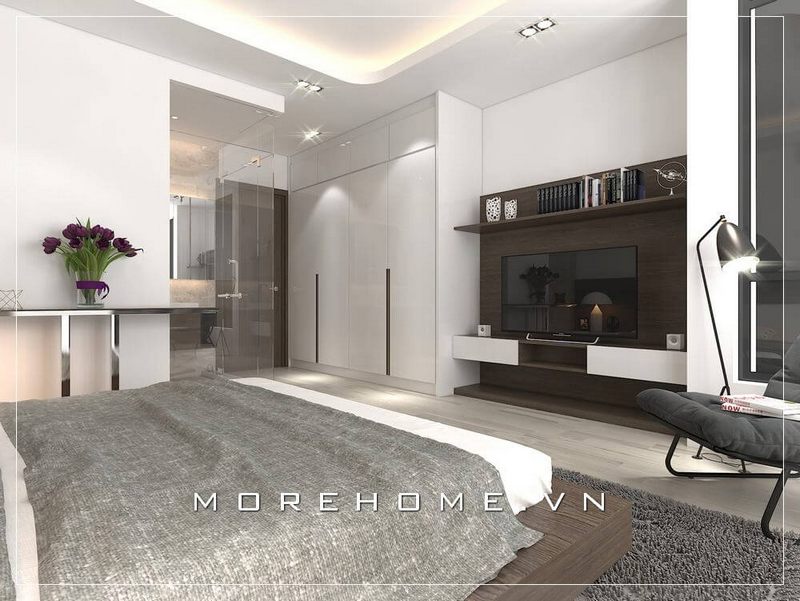 Mẫu tủ áo hiện đại màu trắng với chất liệu gỗ công nghiệp giá cả hợp lý được lựa chọn để phù hợp với nhu cầu và mức đầu tư của gia chủ.