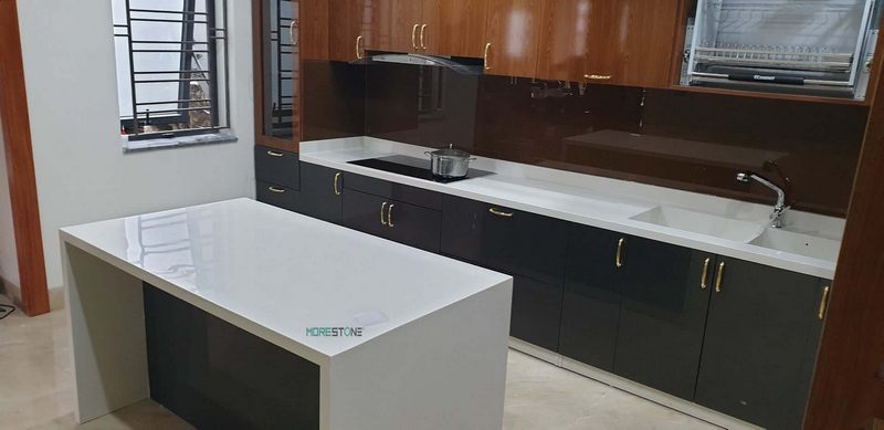 Người thợ MoreStone đã hoàn thành công trình thi công đá ốp bếp Casla tại chung cư cao cấp.